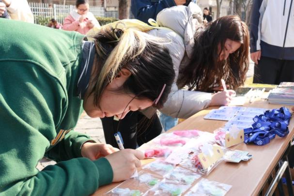 手写明信片、背景板留言……文字在笔尖与指尖流动,温暖在笑容与对话中传递。