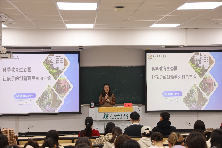 洪庙小学作为首批全国中小学科学教育实验校,始终以绿色生态为核心基调,深耕科学教育创新实践。学校以“法布尔生态教育课程”为核心构建校本课程矩阵,聚焦“科学教育生态圈”打造,通过跨学科学习激活自然生态教育的综合育人价值,引导学生在自然实践中提升科学素养、养成科学精神。凭借扎实的课程建设,学校先后成为上海市多项课程试点校及示范基地学校,其先进经验对教院学子未来深耕教育领域具有极强的示范引领与学习借鉴价值。