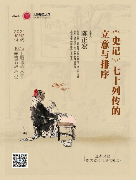 由陈正宏主讲的光启通识课程:《<史记>七十列传的立意与排序》于2021年10月12日下午14:45-16:15在奉贤5教A101顺利举办。陈正宏,复旦大学古籍整理研究所教授、博士生导师,全国古籍保护工作专家委员会委员,上海市文物鉴定委员会委员,从事版本目录学、文学文献学、美术文献与美术史的教学与研究。所著《沈周年谱》曾获全国高校出版社优秀学术著作奖,合著《中国禁书简史》、《中国隐士文化》被分别译成日文、韩文出版。另主编有《中国学术名著提要•文学卷》和《古籍印本鉴定概说》。陈教授对《史记》列传的立意与排序加以通俗而详明的讲解,为广大文史爱好者俯瞰汉前中华文化世界打开了兴趣之门。
